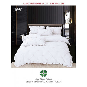 Lenjerie pat dublu, BUMBAC FINET, 4 piese, cu PLIURI și VOLĂNAȘE