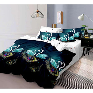 Lenjerie pat Lebada, 6 piese, culoare alb/turcoaz, bumbac 100%, brodata (1 husa pilota 240 x 220, 1 cearsaf pat 270 x 240, 2 fete de perna 50 x 70, 2 fete de perne decorative 50 x 50)