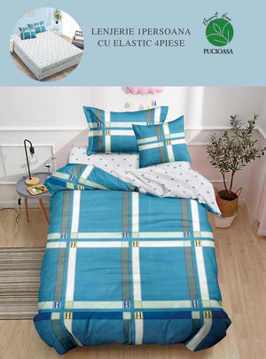 Lenjerie pentru pat de o persoana cu 4 piese, confectionata din bumbac 100% finet.