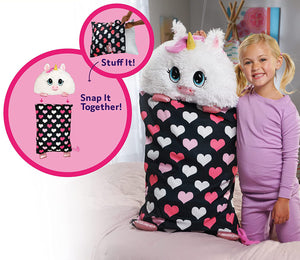 Fluff Pets sunt fetele de perna care in acelasi timp sunt si o companie pufoasa! Partea superioara, jucaria de plus, se poate atasa sau detasa de la fata de perna dupa bunul plac.