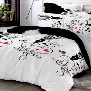 Lenjerie de pat alba cu gri din finet din 6 piese, model I love you