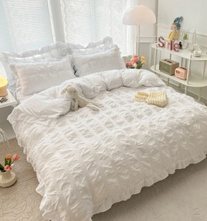 Lenjerie de pat CREPONATA pentru 2 persoane, 6 piese - Alba