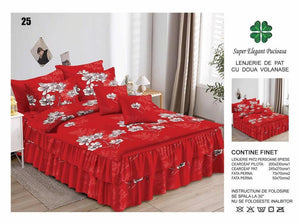 Lenjerie De Pat Finet Cu Volanase - Rosu Cu Flori