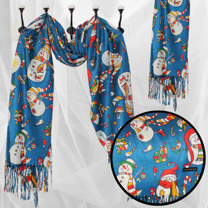 Esarfa Casmir de Crăciun cu Model Oameni de Zăpadă - Albastru