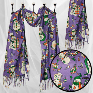 Esarfa Casmir de Crăciun cu Model Oameni de Zăpadă - Lila