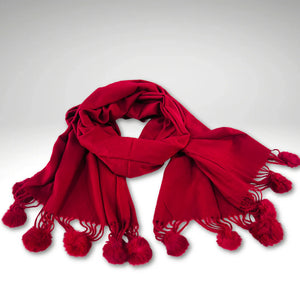 Esarfa din Casmir, cu Ciucuri - Rosu