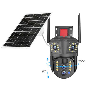 Cameră de supraveghere 4G cu panou solar, 4 camere, zoom optic 10X, detecție PIR, LED-uri IR și alarmă, rotație 355°/90°, IP66