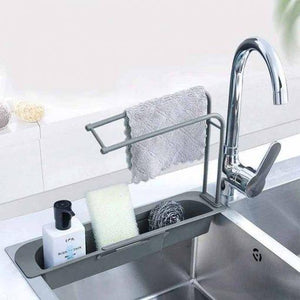Este un suport pentru chiuvetă extensibil cu care puteți organiza și elibera spațiu pe blatul bucătăriei într-un mod foarte ușor