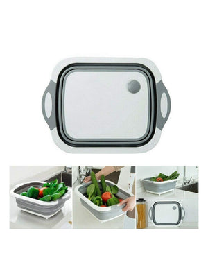 Acest recipient este extrem de util in orice bucatarie, dar mai ales in camping si picnic. Cu ajutorul acestuia puteti spala alimentele (are dop de scurgere), servi, dar si toca. Ocupa extrem de putin loc, are 2 dimensiuni in varianta castron, iar tocatorul are sant de adunare a lichidului scurs. Are manere, dar si picioruse aderente, anti-alunecare. Realizat din polipropilena si silicon.